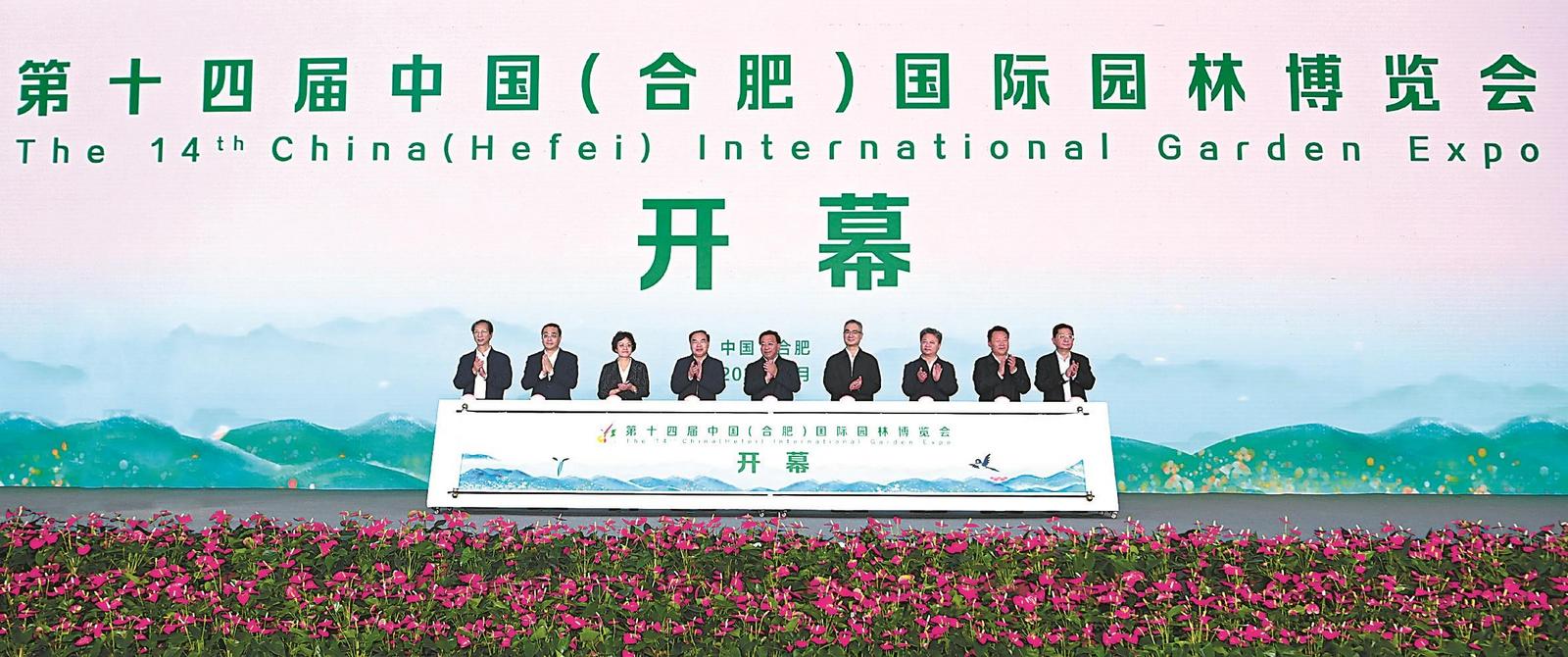 9月26日,第十四届中国(合肥)国际园林博览会在合肥开幕。省委书记韩俊,省委副书记、省长王清宪,省政协主席唐良智,住房和城乡建设部党组成员、副部长秦海翔,省委副书记程丽华,省领导虞爱华、费高云、魏晓明,住房和城乡建设部总经济师杨保军出席并共同启动开幕装置。本报记者 杨 竹 摄