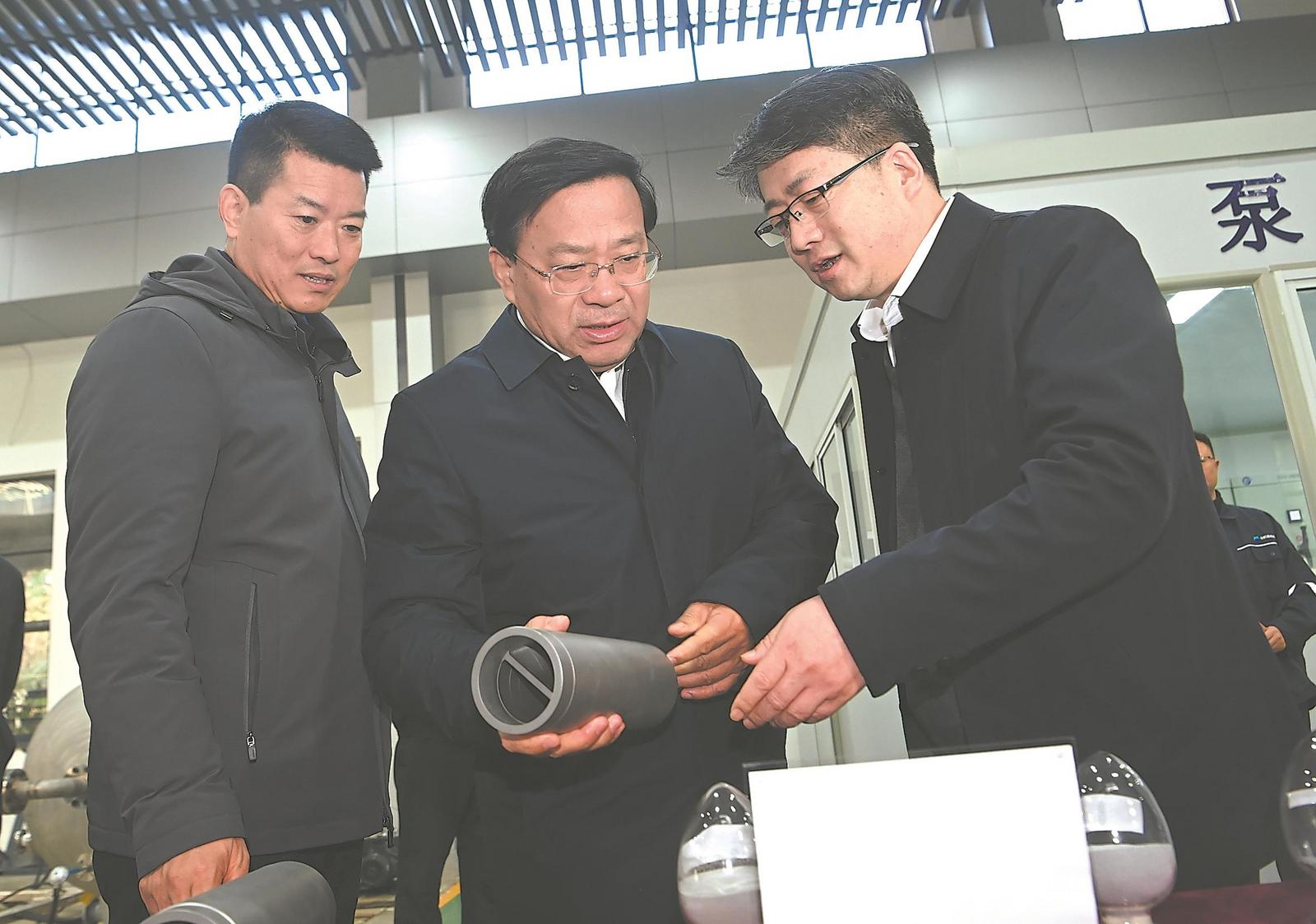 合肥通用机械研究院有限公司是国家高新技术企业、国家创新型企业、国家技术创新示范企业,攻克了一大批重大装备国产化以及长周期安全保障技术难题。韩俊来到这里,察看国家通用机械基础件创新中心、高端压缩机及系统技术全国重点实验室,听取研究方向、研究成果等情况介绍,勉励他们用好国家级创新平台资源,结合安徽发展所需,加强科技研发和成果就地转化,更好助力安徽制造业高端化、智能化、绿色化发展。强调要聚焦国家重大战略需求,推动产学研用深度融合,加强关键核心技术攻关,催生孵化更多创新成果。来到氢能储运装备技术安徽省重点实验室,韩俊察看超高压氢气循环疲劳测试系统,听取氢能技术研究应用情况介绍。他说,氢能是重要的清洁能源,是未来产业的重点发展方向,要坚持应用引领,在基础研究、技术研发上继续求突破,构建轻量化、低成本、安全性能高的储运体系,加速氢能产业化步伐。