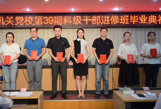 7月3日下午,省直机关工委党校举行第39期科级干部进修班毕业典礼。副校长李宜、教育长胡效英出席典礼并为优秀学员和毕业学员代表颁发证书。