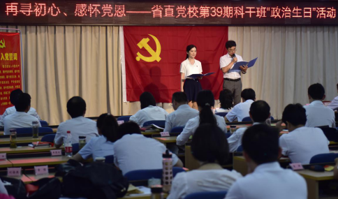 7月1日下午,省直机关工委党校第三十九期科级干部进修班举办“再寻初心,感怀党恩”共庆政治生日活动,隆重庆祝建党99周年。副校长、校机关党委书记李宜出席活动并致辞,教育长胡效英,办公室、教务处相关同志及全体学员出席活动。