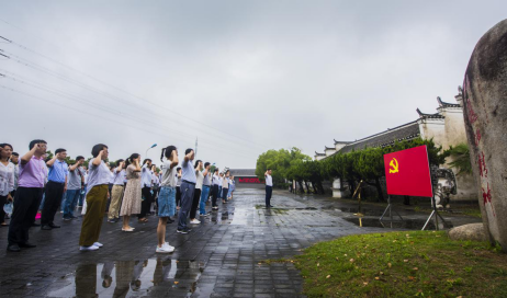 在总前委旧址纪念馆广场,学员们面向鲜红的党旗,重温入党誓词。铿锵有力的誓言表达了学员们传承红色基因,弘扬优良传统的信心和决心。步入纪念馆,学员们现场聆听讲解、瞻仰革命实物、观看影像资料,实景感受新中国成立前,革命先辈们的丰功伟绩。