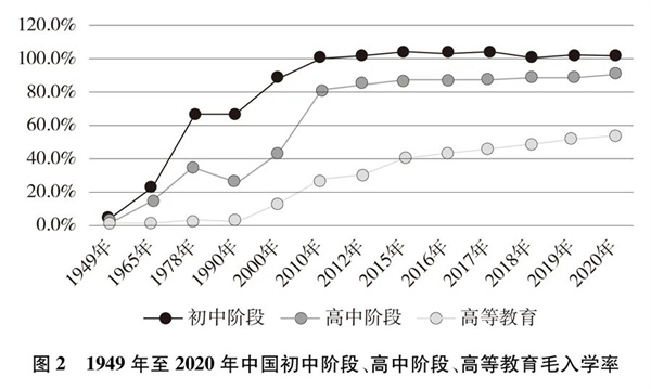 教育机会更加均等。中国教育事业优先发展不断深化,中国青年享有更加平等、更高质量的教育机会。2021年,中国义务教育巩固率达95.4%;高中阶段毛入学率达91.4%;高等教育毛入学率达57.8%、在学总规模达4430万人,居世界第一,越来越多的青年打开了通往成功成才大门的重要路径。覆盖学前教育至研究生教育的学生资助政策体系建成且日趋完善,2020年资助资金总额超过2400亿元、资助学生近1.5亿人次,实现“三个全覆盖”②。义务教育阶段进城务工人员随迁子女、农村和贫困地区学生等群体受教育权益得到充分保障。2020年,85.8%的进城务工人员随迁子女在公办学校就读或享受政府购买学位服务;2012年至2021年,农村和贫困地区重点高校专项招生计划定向招生超过82万人,让更多的青年公平享有接受更好教育的机会,阻断贫困的代际传递。