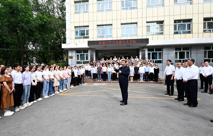 12日下午至13日上午,习近平总书记在新疆乌鲁木齐市考察了新疆大学、乌鲁木齐国际陆港区、天山区固原巷社区、新疆维吾尔自治区博物馆,了解新疆加强人才培养、统筹疫情防控和经济社会发展、扎实推进民族团结进步、铸牢中华民族共同体意识等情况。