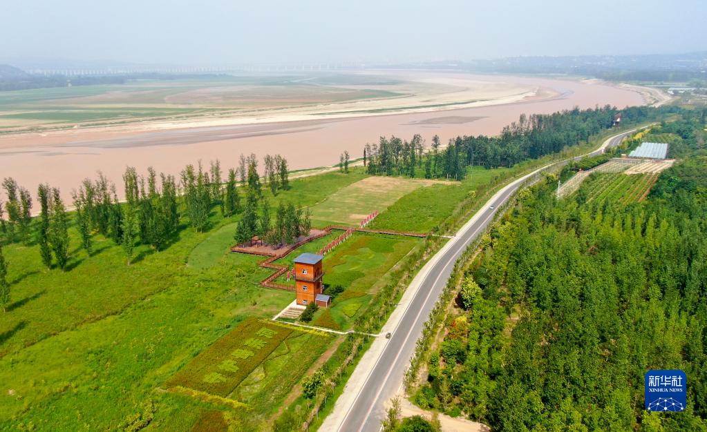 这是2022年8月10日在河南省三门峡市拍摄的黄河生态廊道(无人机照片)。新华社记者 郝源摄