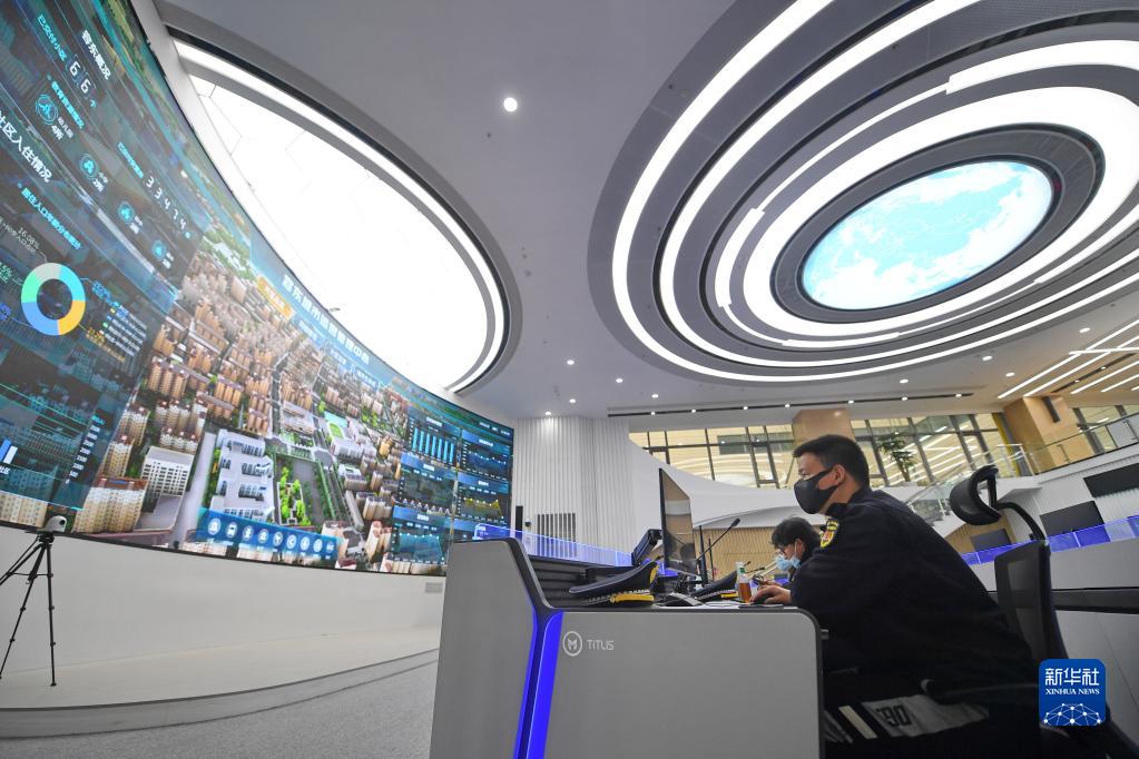 2022年3月29日,工作人员在雄安新区容东城市运营管理中心监管平台工作。新华社记者 朱旭东摄