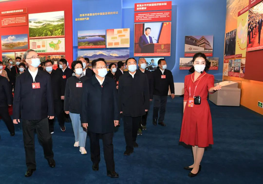 10月17日晚,党的二十大安徽省代表团前往北京展览馆,参观“奋进新时代”主题成就展。安徽省代表团团长、省委书记郑栅洁,代表团副团长、省长王清宪,党的二十大代表唐良智、程丽华、张西明、刘海泉、虞爱华、张韵声、丁向群、郭强、张红文、舒歌群等参观展览。