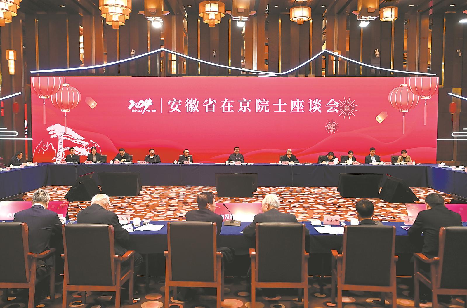 2月2日上午,安徽省在京院士座谈会在北京召开。省委书记韩俊主持会议并讲话。本报记者 杨 竹 摄