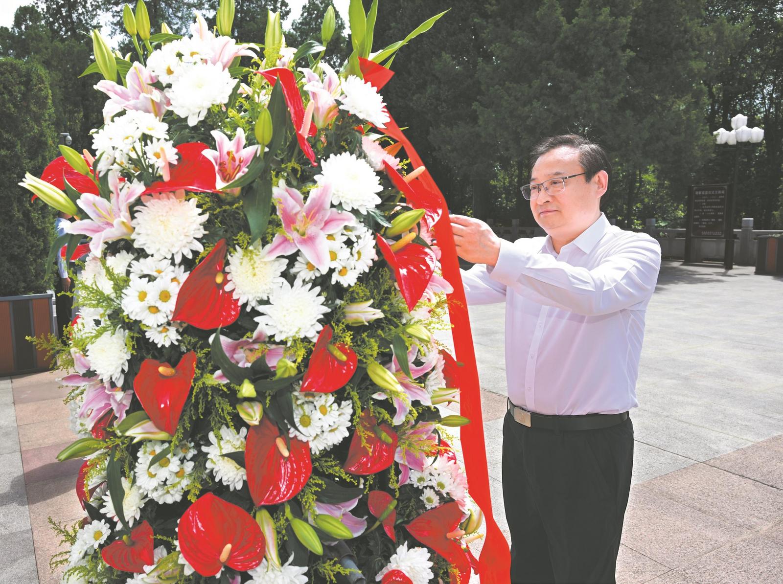 6月30日,省委书记梁言顺来到六安市金寨县红军广场,向革命烈士敬献花篮。本报记者 杨 竹 摄