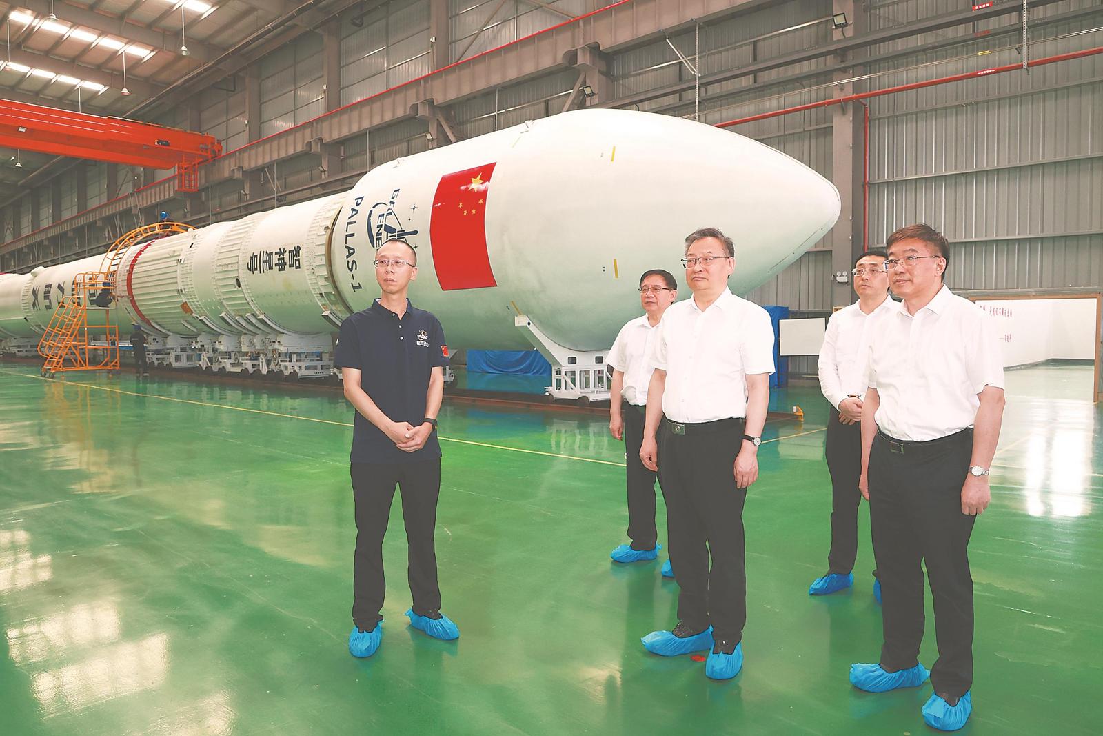 8月8日上午,省委书记梁言顺来到安徽星河动力装备科技有限公司生产车间,察看液体火箭总装、发动机生产,了解企业技术研发、应用试验、生产经营等情况。本报记者 许 昊 摄