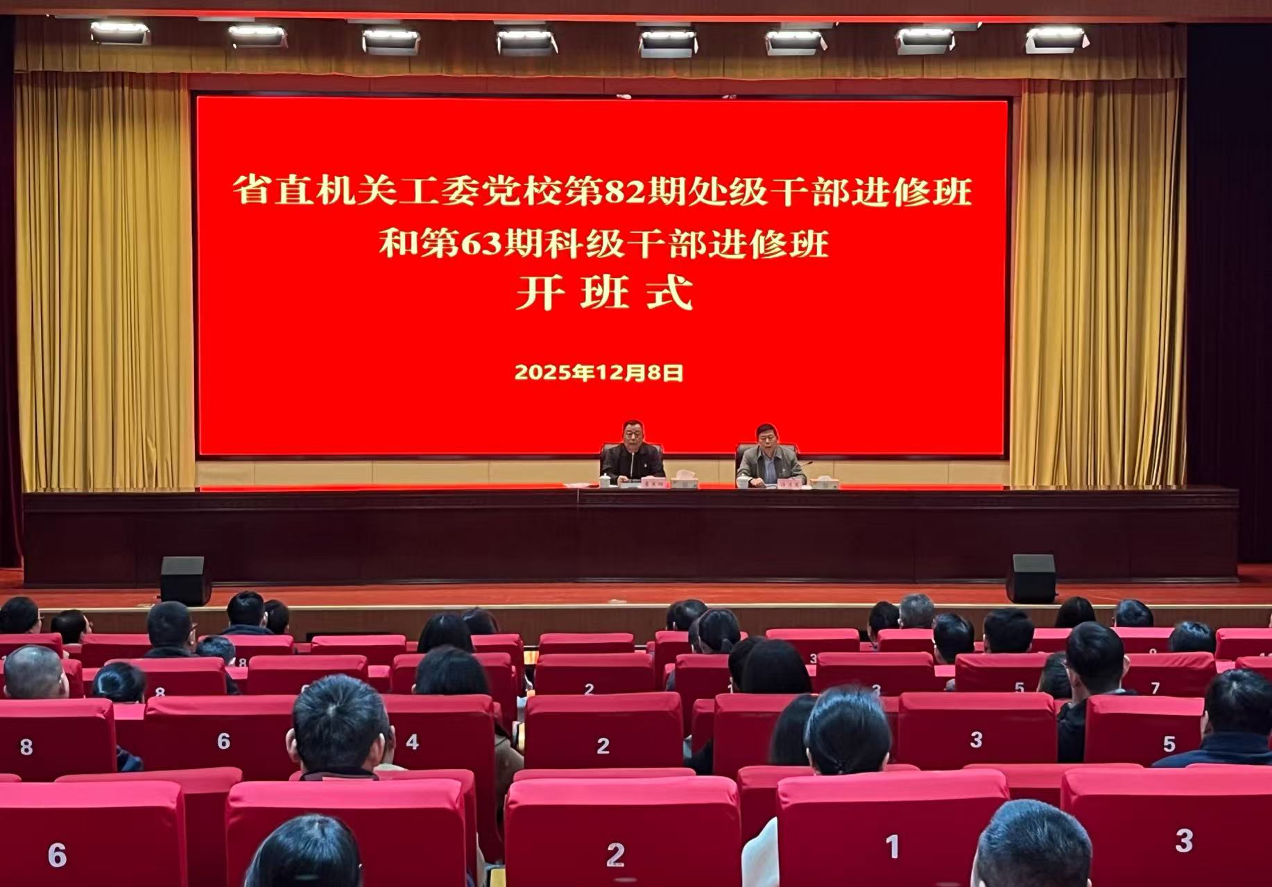 2025年12月8日,省直机关工委党校举行第82期处级干部进修班和第63期科级干部进修班开班式,常务副校长虞美顺出席并作动员讲话。开班式由副校长许连玉主持,全体学员及党校相关处室同志参加。
