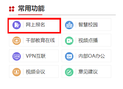 1.首先进入“中共安徽省直属机关工作委员会党校”门户网站(http://www.ahszgwdx.cn/),在页面右侧中部“常用功能”栏中点击“网上报名”按键,进入报名系统。