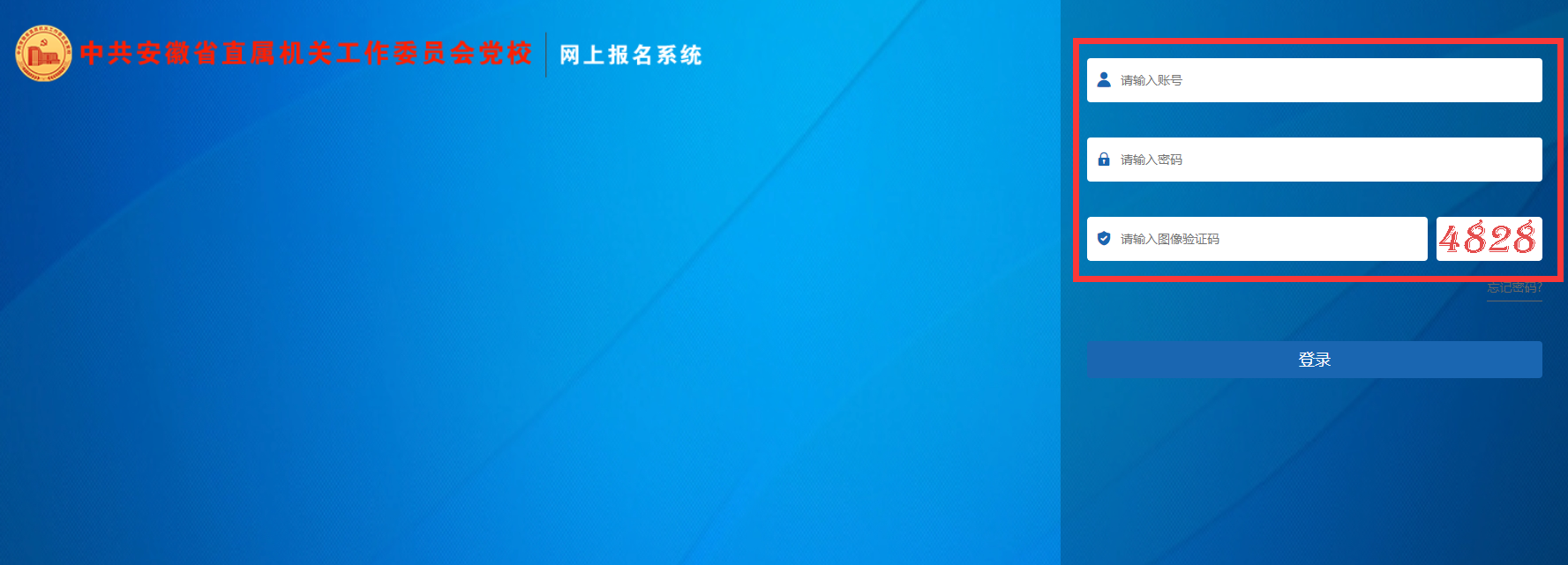 2.填写登录名、密码,登录系统(各单位登录名见附件,初始密码请与安徽省直机关工委党校教务处联系,联系电话:13515655611,登录后请立即修改密码,并完善相关信息。)