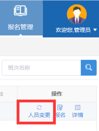 在网报截止日期前,如需要调整参加培训学员,可点击“报名管理”页面右上角“人员变更”键,进行更换。