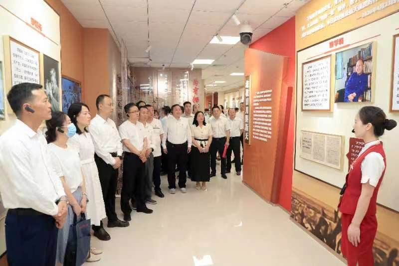 在省档案馆,学员们先后参观了《百年恰似风华正茂》《书信家国 尺牍情深——弘扬伟大建党精神长三角档案联展》,讲解员讲得认真,学员们听得仔细,不时驻足凝望、低头沉思。透过一封封感人的书信、一张张泛黄的手稿、一幅幅珍贵的照片、一幕幕鲜活的影像、一个个感人至深的故事,大家深情回望中国共产党的百年奋斗历程和取得的伟大成就,深刻感悟我们党不断从胜利走向胜利的成功密码和力量所在。